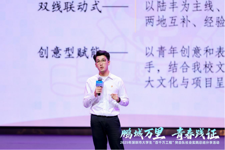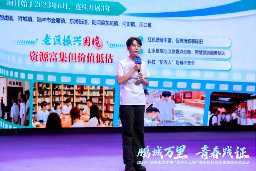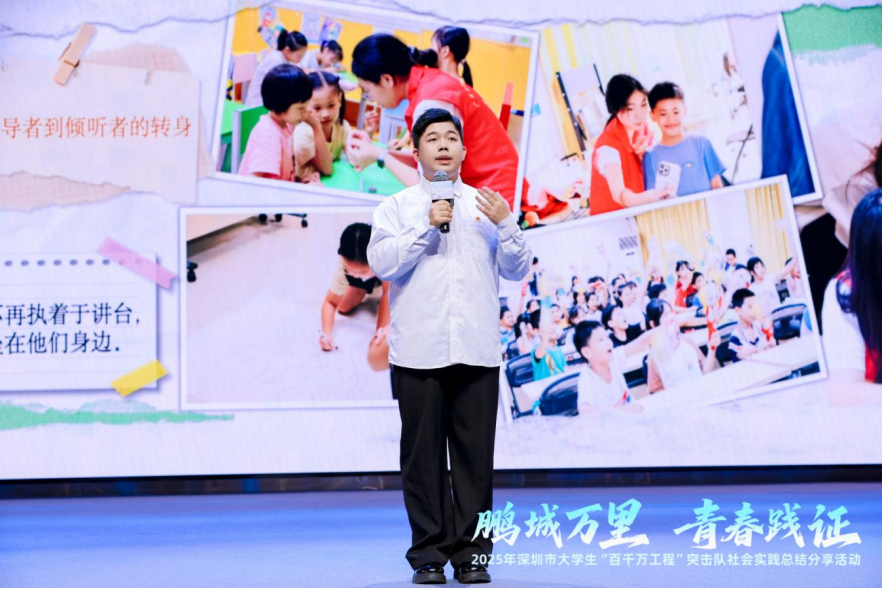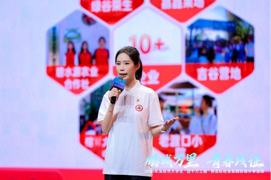 近日,由共青团深圳市委员会、深圳市学生联合会主办,深圳职业技术大学承办,共青团南山区委员会协办的2025年深圳市大学生“百千万工程”突击队社会实践总结分享活动在深圳职业技术大学举办。深圳市“百千万工程”指挥办、团市委、市乡村振兴和协作交流局、深圳职业技术大学、市学生联合会、各高校团委负责同志,全市各大、中学青年师生代表600余人参加了活动。