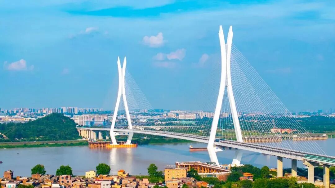 富龙西江特大桥作为佛山一环西拓关键工程,于2024年11月22日正式建成通车。项目全长5.81公里,采用八车道一级公路兼城市快速路标准建设,跨越拟通航5000吨级海轮的西江一级航道,其控制性工程主桥为跨径580米的双塔双索面钢-UHPC(超高性能混凝土)组合梁斜拉桥,桥梁全长1770.6米,连接佛山三水与高明两区,促进西江两岸城市联通发展,是广佛西部片区交通网络的重要枢纽。