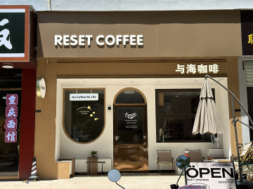 离海几百米的「与海咖啡」太懂浪漫!原木风裹着文艺清新的调调,点杯特调「特调椿日」,清新的绿色混着咖啡香,惬意!