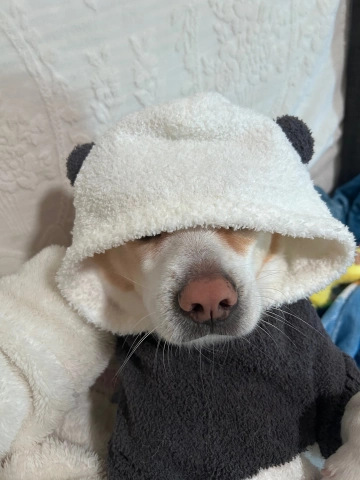 天冷了,狗狗换上熊猫套装。😁😁