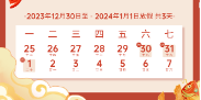 2024年元旦放假三天,2023年12月30日(星期六)至2024年1月1日(星期一)放假不调休。