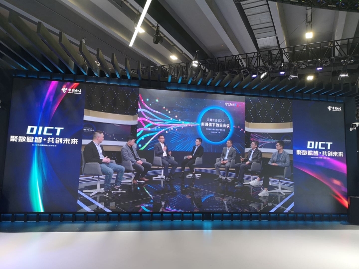 本届天翼智能生态博览会上,DICT“聚数赋智 共创未来”展区主要展示了视觉智能平台、智能通信云平台、天翼云会议、安全能力平台等。
