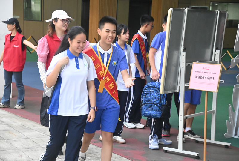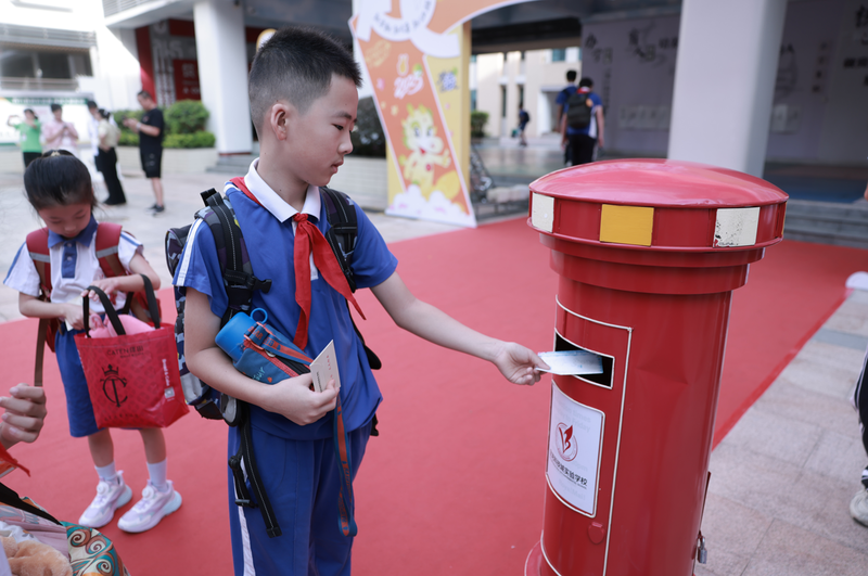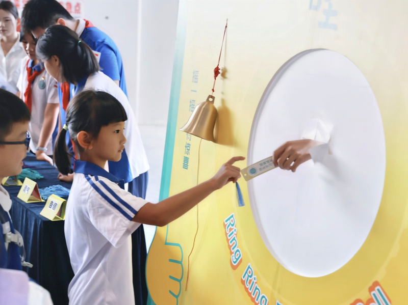 深圳市罗湖未来学校精心设置了趣味打卡点:孩子们兴奋地拿上“录取通知书”寻找名字合影,“摇响启智铃”收获祝福书签,并郑重“为未来的自己选择一枚成长流苏”,仪式感满满。