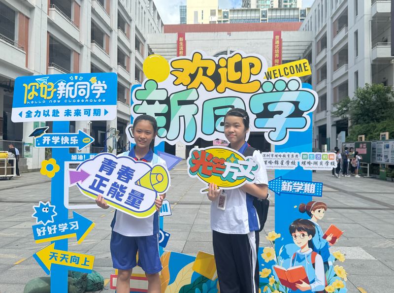 其中,深中南山创新学校以“启航新程·筑梦中华”为主题,点亮开学第一课。校门口,“吾辈自强”主题打卡区吸引了许多“萌新”和家长们驻足互动。班级里,每张课桌上都摆放着老师精心准备的新学期“能量加油包”,趣味小游戏迅速点燃班级气氛。