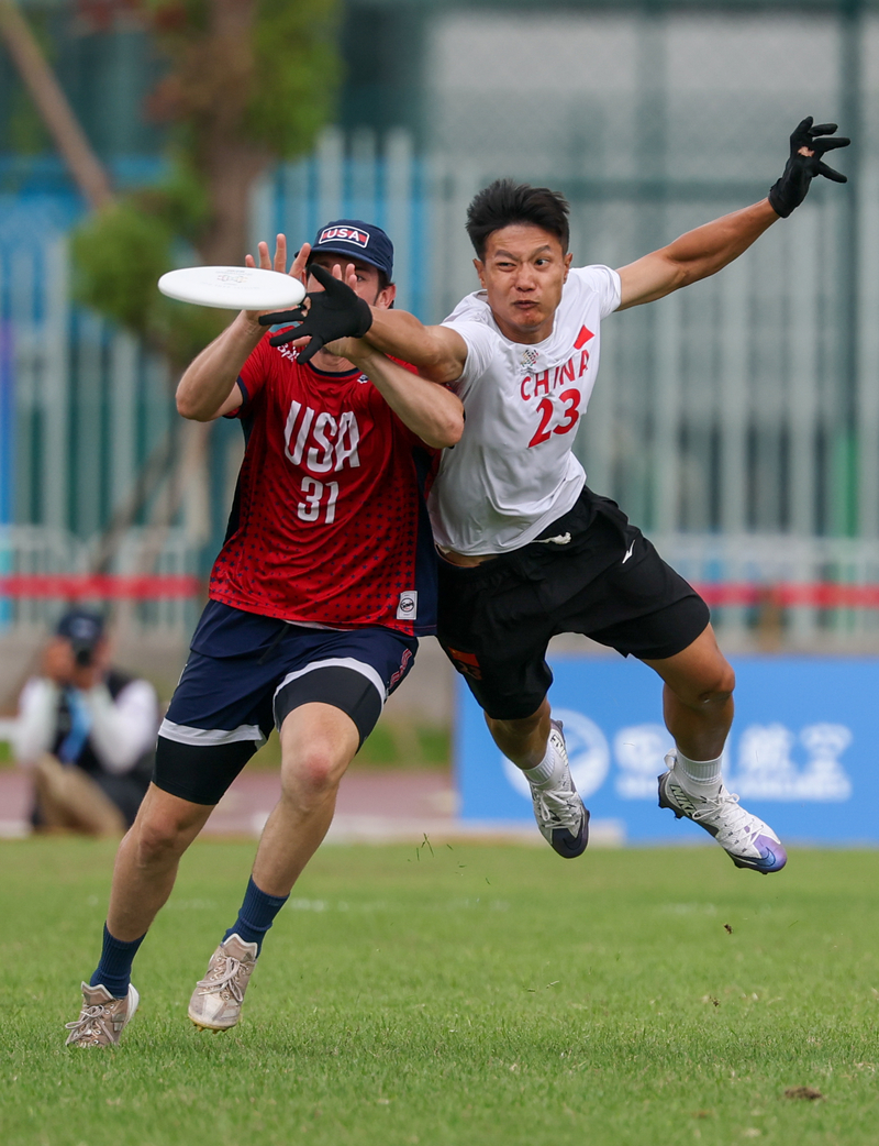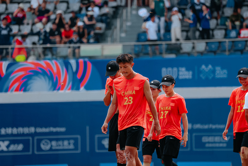 更成熟的郭嘉荣迎来了更多机会。2024年,他入选团队飞盘国家集训队,2025年8月,他代表国家参加成都世界运动会。这是中国队第一次参加世运会,郭嘉荣是第一位参加世运会的深圳飞盘选手。虽然比赛成绩和世界其他队伍相比还有差距,但中国队已经创造历史,甚至仅仅以1分只差,惜败给世界前十的日本队。在这次被称作“梦幻”的世运会旅程中,郭嘉荣还有另一项收获——国家队新加坡籍教练打造的团队文化。