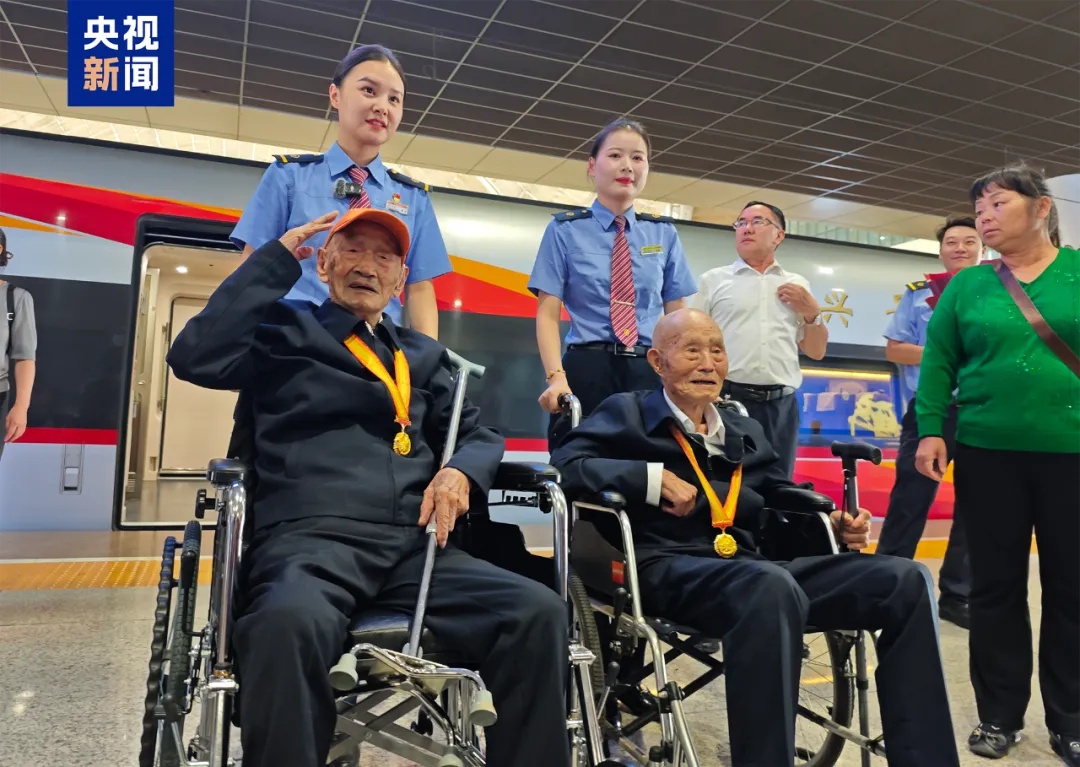 近日,百岁抗战老兵宋其祥、刘吉祥参加完中国人民抗日战争暨世界反法西斯战争胜利80周年纪念活动后,搭乘高铁从北京返回湖北。在列车上,一段特殊的广播响起,全车人热烈鼓掌。