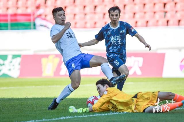 A组中,梅州强民坐镇曾宪梓体育场迎战阳江西海岸,虽然只需要1分即可挺进八强,但主场作战的梅州强民丝毫不保守,主动出击的他们在上半场补时阶段打破僵局,范海乾重炮轰门,皮球击中横梁弹进球门。下半场,陈泽文的补射和曾梓航的点球,帮助梅州强民以3比0完胜对手,与同组的广东蜀地红同以2胜1平的战绩携手出线。