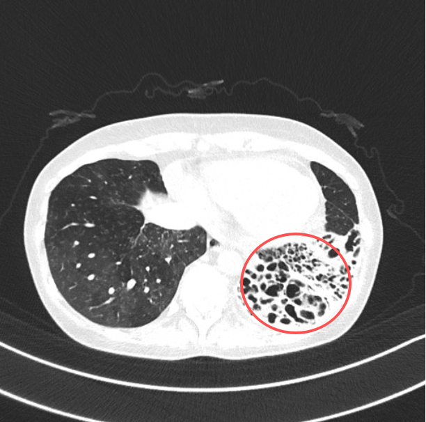 当她被推进北大深圳医院急诊大厅时,急诊科立即启动急危重症孕产妇绿色通道,值班急诊医生快速评估,患者的血压已接近休克阈值,心率100次/分,血氧饱和度95%,CT显示左下肺、左上肺舌段、右中肺支气管扩张。
