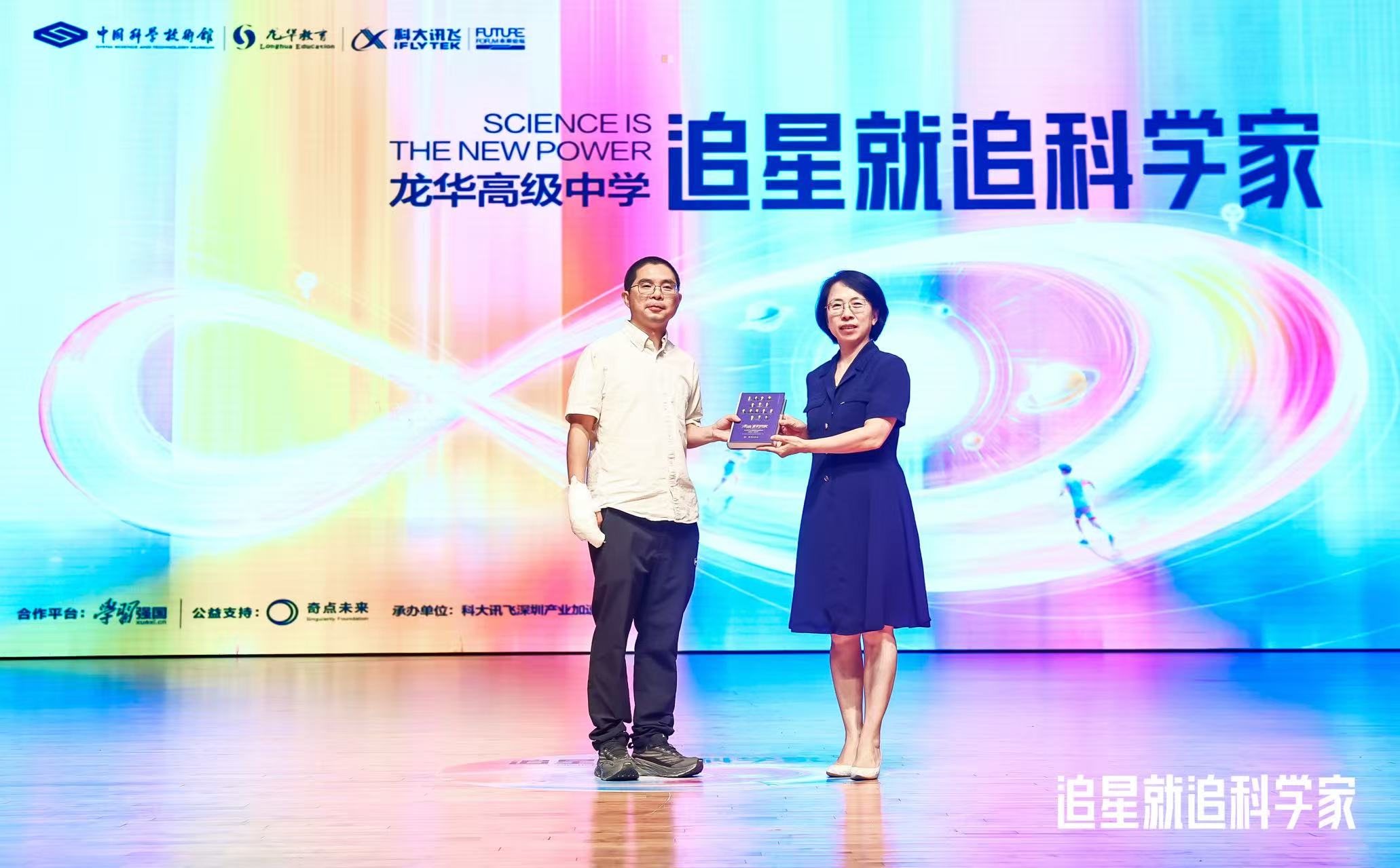 近日,科大讯飞与未来论坛联合举办的“追星就追科学家”公益科普讲座走进深圳龙华高级中学。朱华星以《宇宙中的极大和极小》为主题,带领同学们展开了一场从渺小粒子到无垠星海的奇妙旅程。从量子世界到星系团,从微观到宏观,科学的光芒照亮了一颗颗少年的好奇心。