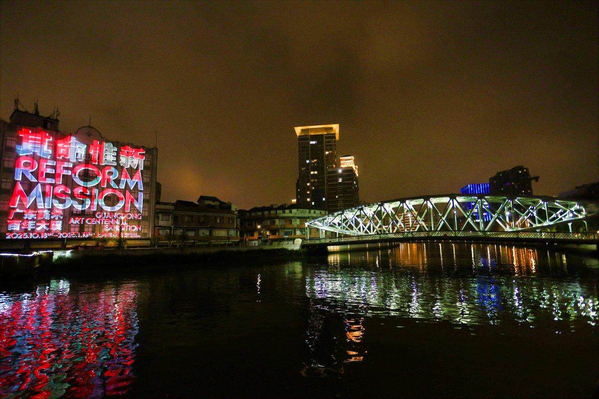 作为本次“其命惟新——广东美术百年大展”启幕的预热活动,在第二届上海国际光影节期间每天18时至22时,苏州河畔的“闪亮·上海 静安光影季”上演了广东美术名家名作光影秀,吸引众多市民、游客驻足观看。