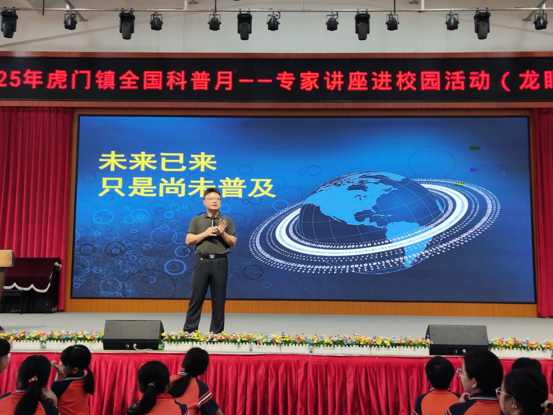 为响应全国科普月活动号召,扎实推进人工智能知识在中小学校园的普及,激发青少年的科学探索精神,10月16日,东莞市虎门镇龙眼小学成功举办了一场兼具学术深度与实践价值的科普讲座。讲座活动以“人工智能”为核心主题,吸引近1000名师生积极参与,助力青少年在互动交流中体悟科技赋能的深远意义,筑牢科学梦想根基。