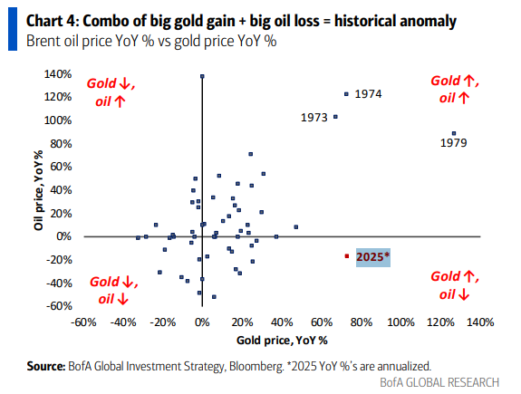 2025年的全球金融市场,可以说打破了许多纪录——黄金、白银、美股、比特币都曾改写过各自的历史新高。而在这个许多资产价格创历史纪录的年份里,还有一幕景象其实也可以称得上极其罕见:那就是两大主要大宗商品——黄金与原油之间的“形同陌路”。👉新闻详情
