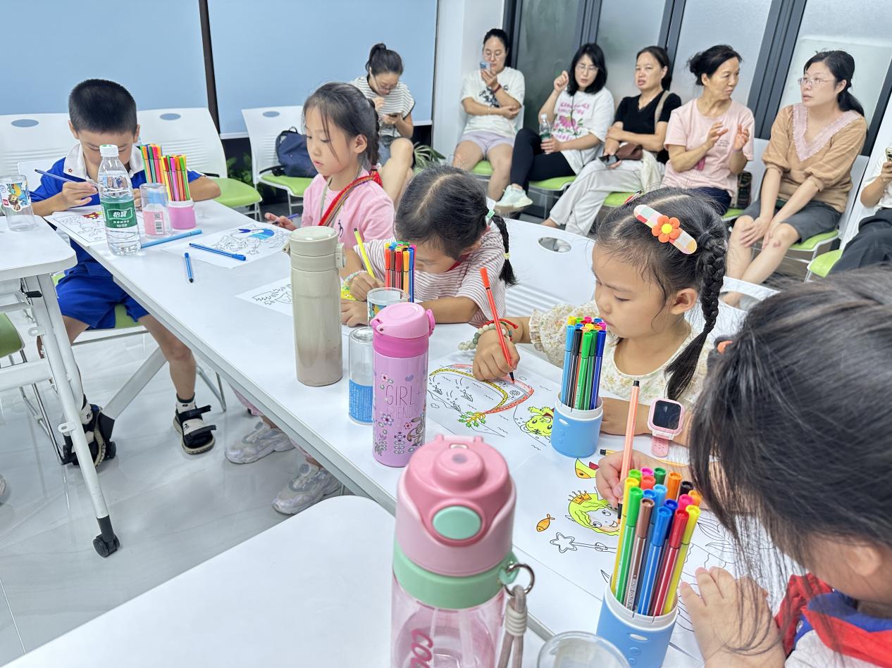 最后,活动迎来创意满满的绘画环节。社工为孩子们分发画纸、彩笔,鼓励大家以 “我心中的绘本故事” 为主题可自由创作可为绘本故事页面上色。大家发挥想象,创作绘本角色。活动现场互动频频,在欢声笑语中一幅幅充满童趣的画作呈现,孩子们积极展示自己的作品,分享创意,成就感满满。
