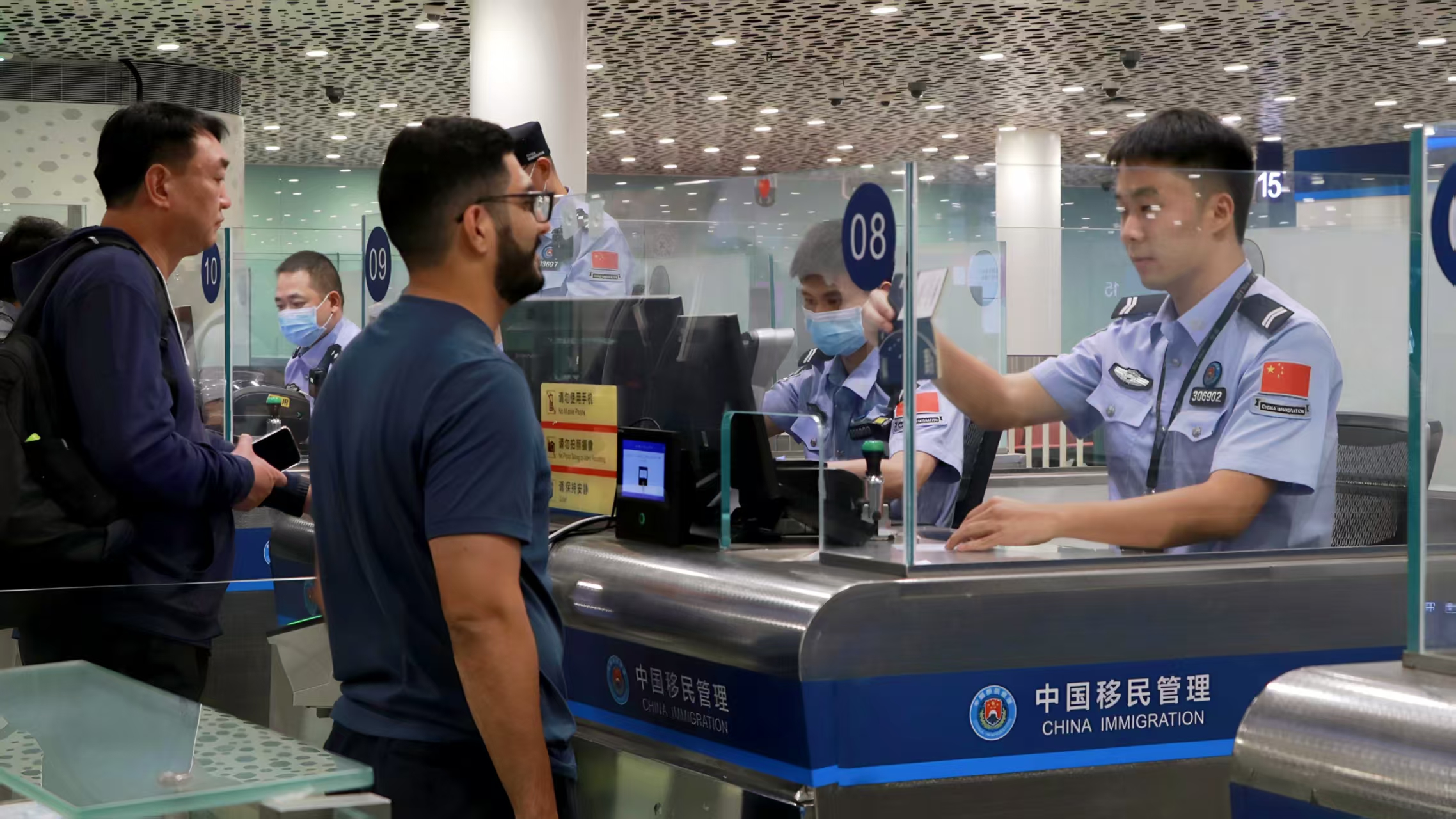 为保障口岸通关高效顺畅,深圳机场边检站强化与机场、航司沟通联络,动态掌握航班情况,优化现场勤务组织,实施外国人分区查验模式,并现场提供专人引导、语言翻译、政策解读等服务,努力提供良好出入境环境。