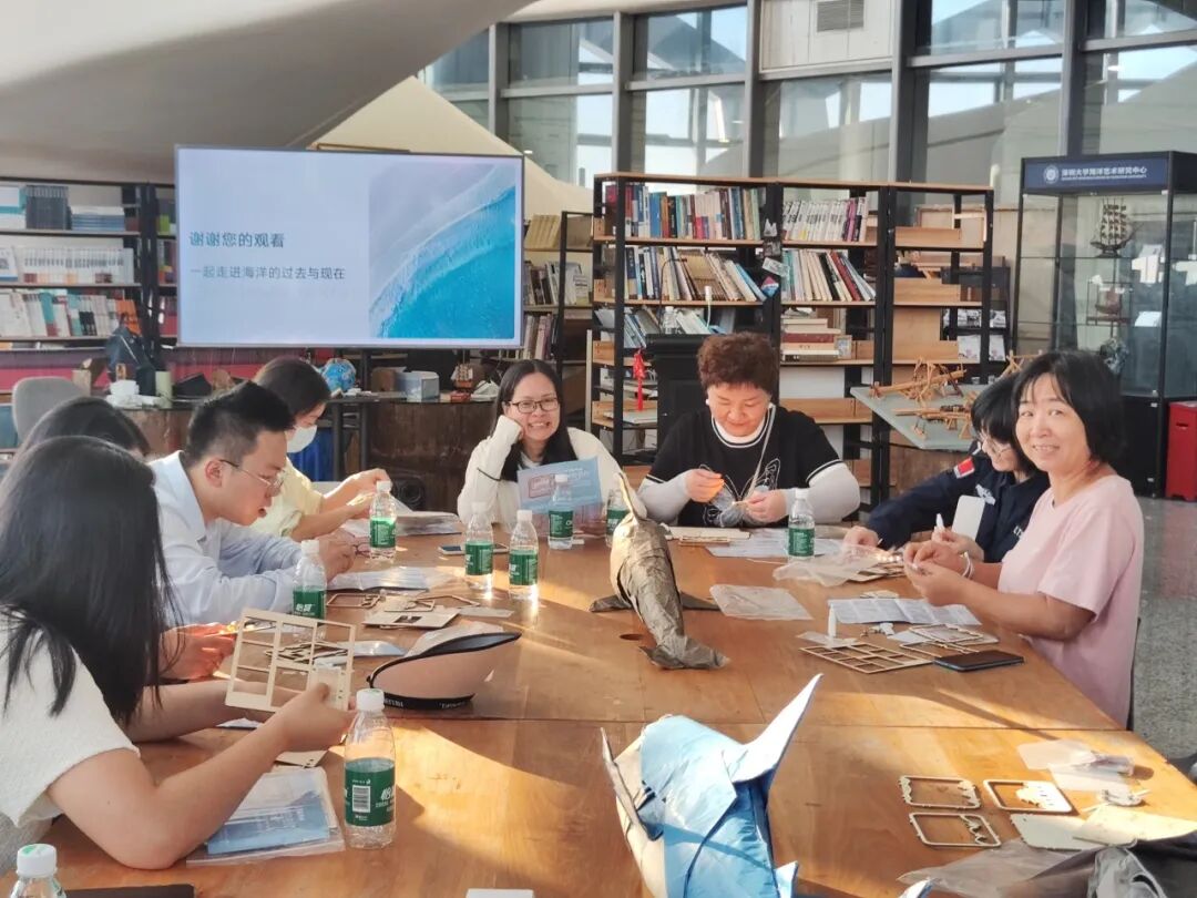 活动伊始,深圳大学海洋艺术研究中心展览教育部主任葛洋老师带领党员们认识深圳建设“全球海洋中心城市”的战略布局,特别指出深圳特区的“闯”劲与“创”劲,与古代航海人民的开拓基因一脉相承——从郑和下西洋的开放探索,到蛇口工业区“开山第一炮”的敢为人先,海洋始终是深圳发展的“动力源”。葛洋介绍了深圳大学海洋艺术研究中心自2014年成立以来的科研项目和社会化转化成果,以“文化艺术+海洋”的无限创想,进一步坚定了参与者对海洋文化的自信,为党建学习注入独特的海洋精神内涵。