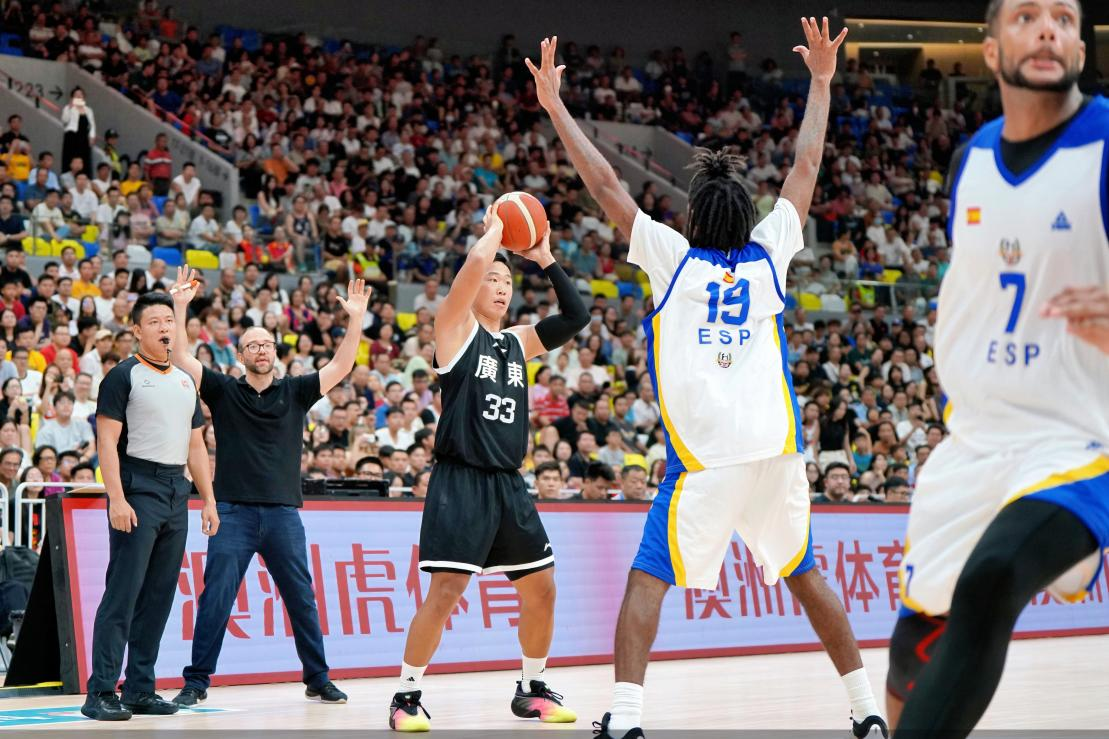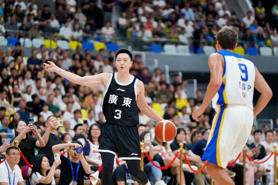 10月19日晚,广东顺德德胜文体中心内掌声雷动,广东全运男篮(成年组)以97比77的比分大胜来访的西班牙赫罗纳俱乐部队,继10月17日大胜美国肯尼哈奇男篮后再获大捷,延续热身赛全胜战绩。