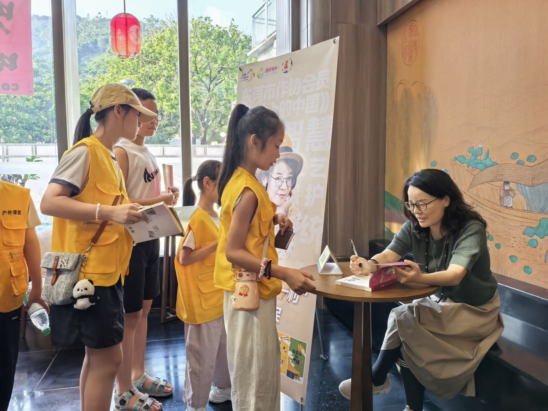 18日,在樟木头作家村的泊·文学书店,由驻村作家浅草带来的《指尖上的中国》作品分享会,吸引了来自深圳的30多名小朋友。浅草围绕自己的作品,以生活视角,串联起器物、手艺、匠人背后的历史与情感,以趣味化的讲述,让现场的小朋友领会到了中华历史中的审美情趣和艺术光芒。随后的“童心对话作家”、作品签赠等互动环节,更让现场气氛热烈非常。来自深圳的小朋友任子浠表示:“这里文学氛围很好,给自己带来了很好的文学体验。”