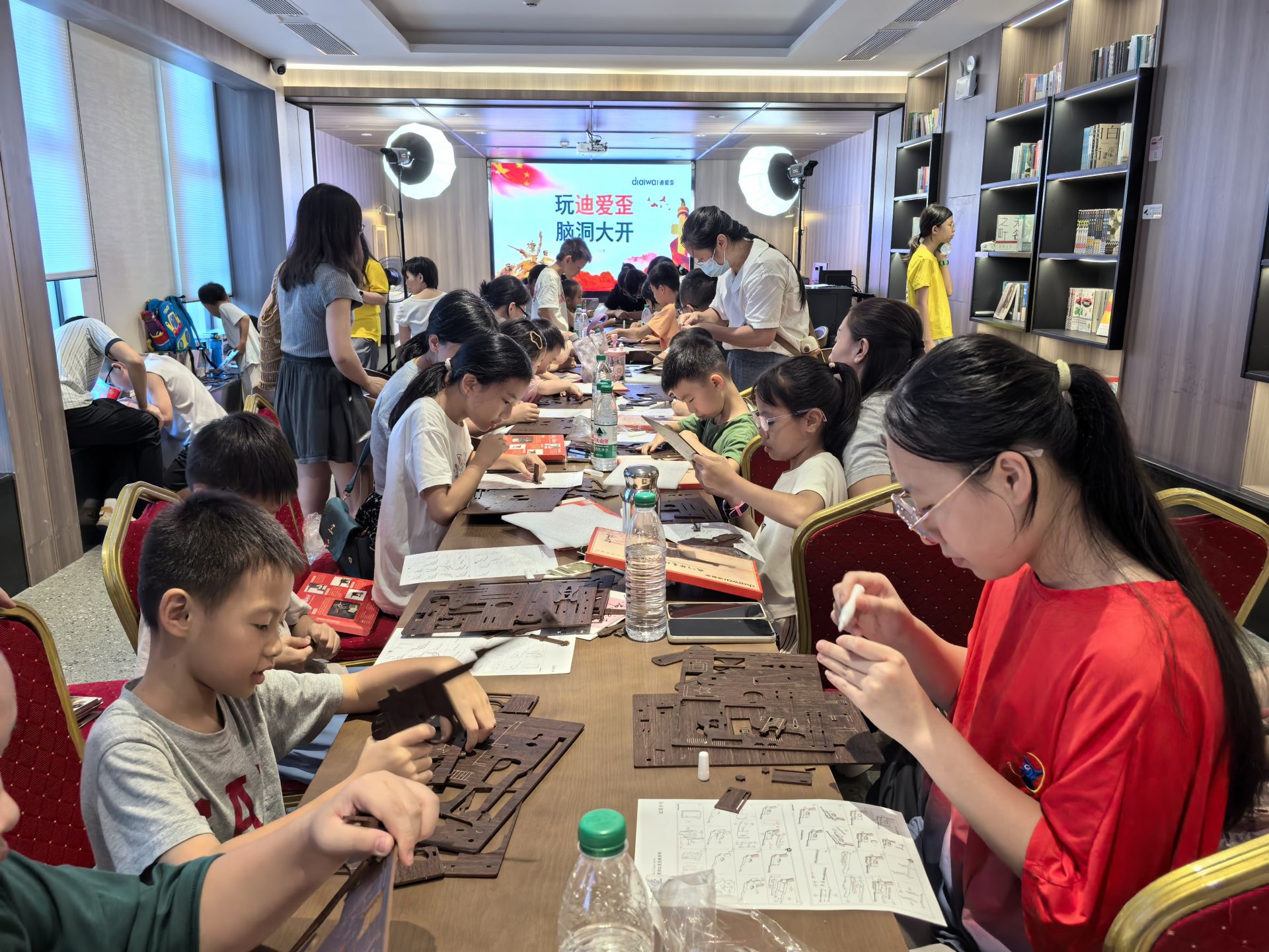 随后的动漫文创IP体验,则由禾沐美术馆主理人郑菁沐与禾马君联袂,为现场的孩子们分享了以中华白海豚为原型的“喜洋洋”和“乐融融”动漫lP的设计构思。而东莞迪爱歪潮玩负责人谭世源则围绕驳壳枪在中国革命历史发挥的作用,为孩子们上了一堂生动的红色教育课,并带领孩子体验拼装木质潮玩驳壳枪。