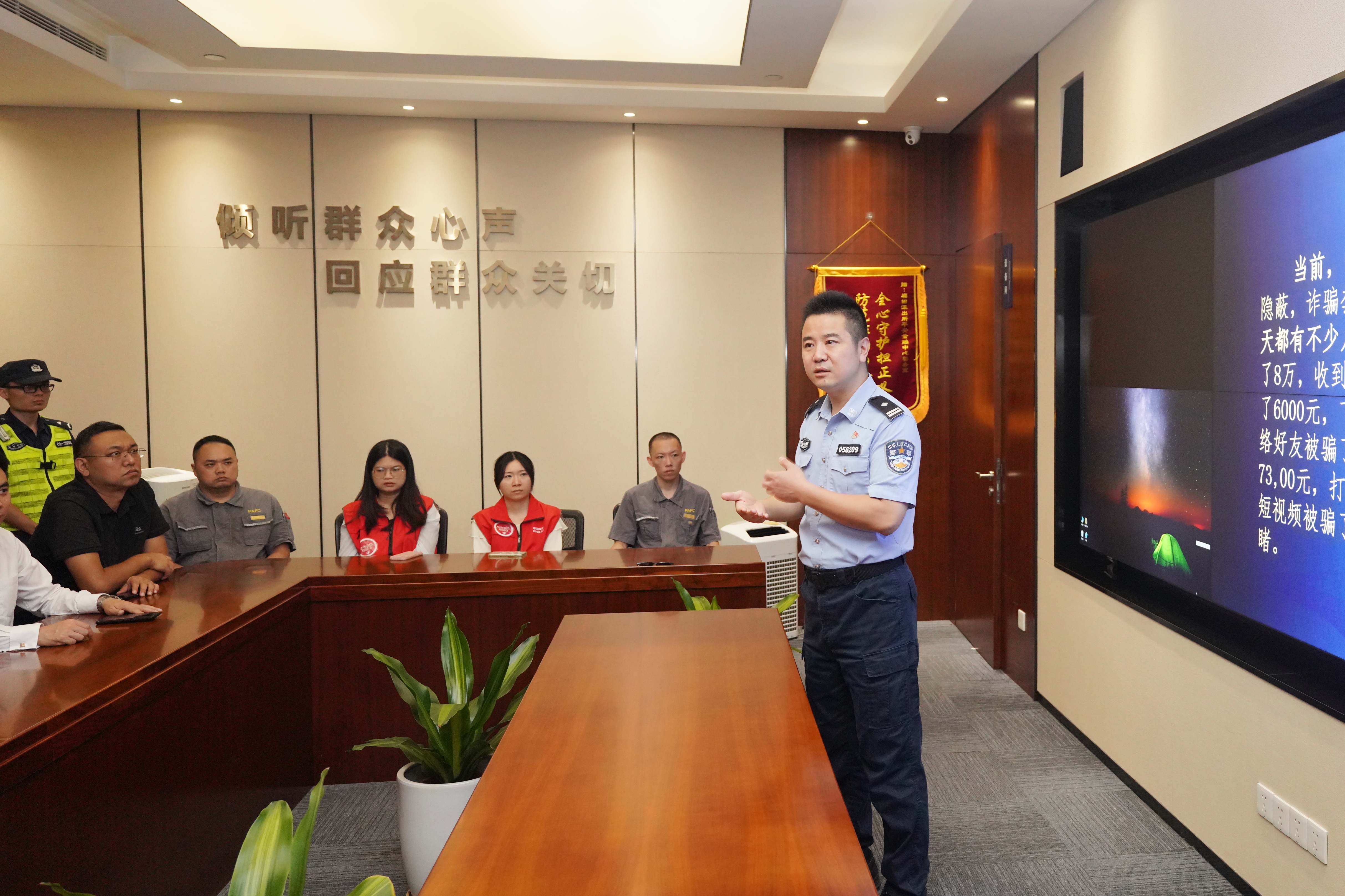 除了“社区反诈宣传志愿队”,“物业反诈宣传队”也是吴伟的重要帮手。每个月,他都会带着课件去小区物业办公室:“你们天天跟住户、辖区企业打交道,得记牢——有人说‘账户冻结要转账’‘领导让垫付资金’这些类似的话,一定要让他们来找我们宣传队核实!”