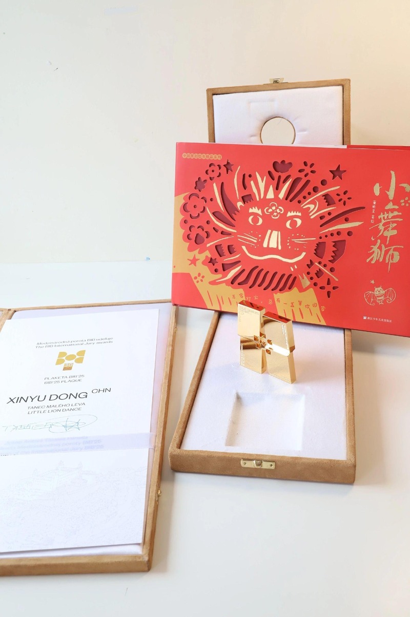 因颁奖时董昕昱仍在深圳,故奖项由布拉迪斯拉发国际插画双年展评委、出版人史妍代领。日前,史妍归国后带领工作人员奔赴深圳龙岗,将代领的布拉迪斯拉发国际插画双年展徽章奖证书与徽章郑重交给董昕昱,为她送上祝贺。