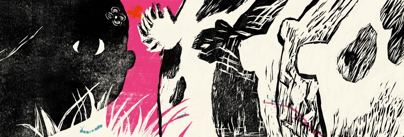 在灵感的推动和两位老师陪伴鼓励式的教学引导下,董昕昱的《小舞狮》情节在温暖的氛围里渐渐成型。她把儿时的剪纸兴趣和木刻版画的创作手法结合起来,希望让心里的种子跟随着创作长大开花。这是一个舞狮带着剪纸动物外出探险,又在除夕团圆夜找到家的温馨故事。