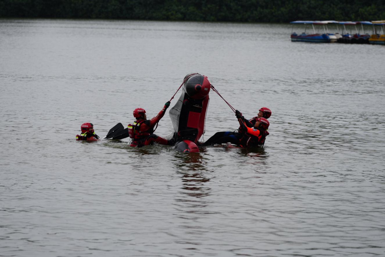 深圳退役军人红星应急救援队作为全省24支参演队伍中唯一一支退役军人代表队伍,在深圳市委社会工作部、市退役军人事务局、市应急管理局的指导与牵头组织下,选派9名骨干队员携带冲锋舟、救生衣、空水两用无人机等专业水域救援装备参演,凭借出色表现圆满完成各项任务。