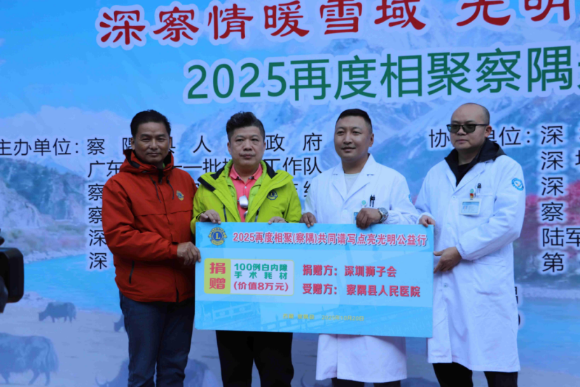 10月20日上午,“察隅光明行”捐赠及术后揭纱布仪式在察隅县人民医院举行。仪式上,深圳狮子会向察隅县人民医院捐赠90套涵盖眼科手术精密器械、术后康复药品及先进诊疗设备的物资。