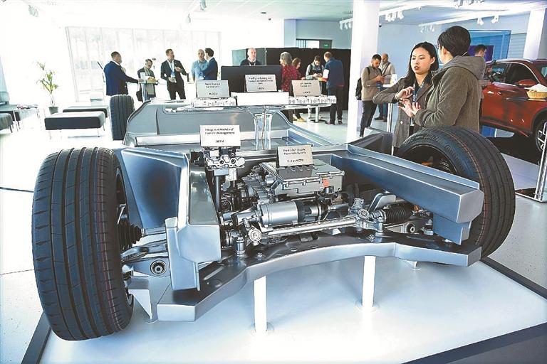 ▲2023年,比亚迪电动汽车底盘系统在匈牙利布达佩斯展示。