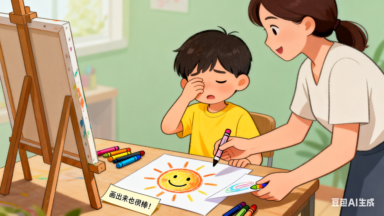 如果娃因口吃说不出想法而着急,可让TA画出来——绘画能帮娃释放没表达出来的情绪,减少“说不出话”的焦虑,间接缓解口吃带来的压力。