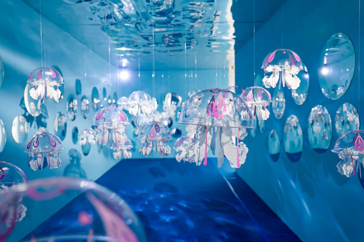 9月29日至12月29日,K11 ECOAST联合中国新锐纸艺艺术家温绮雯推出《海月之日夜》个展。展览以深圳蛇口的渔港历史为灵感,通过水母主题系列作品探讨及传递人生哲思,并巧妙将渔网、纸张等材料等可持续材料,与K11 ECOAST所倡导的绿色发展理念共鸣共生。此次展览通过非遗剪纸技艺将本土文化完美融合于先锋艺术中,为消费者提供沉浸式观展体验。同时,旨在推动传统文化与现代商业深度融合,为行业探索非遗活化路径提供了可借鉴的生动范本。