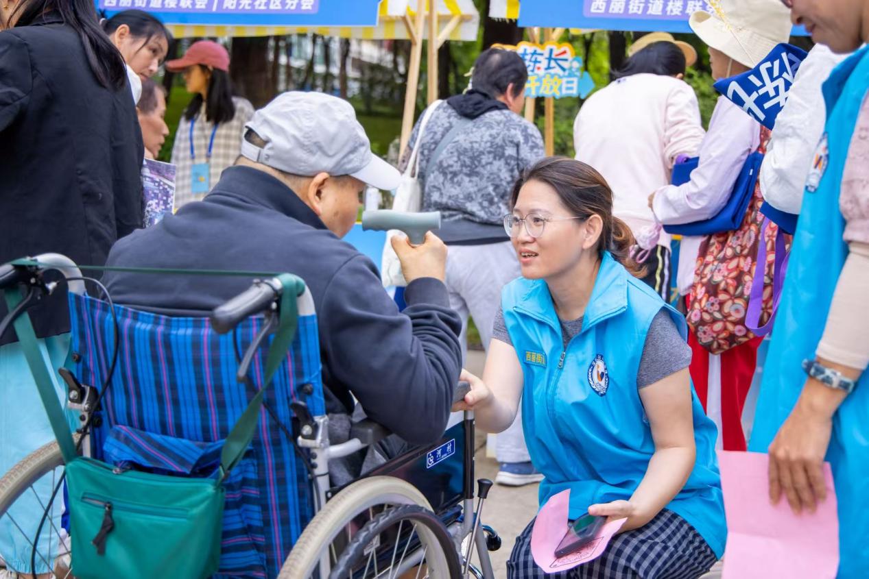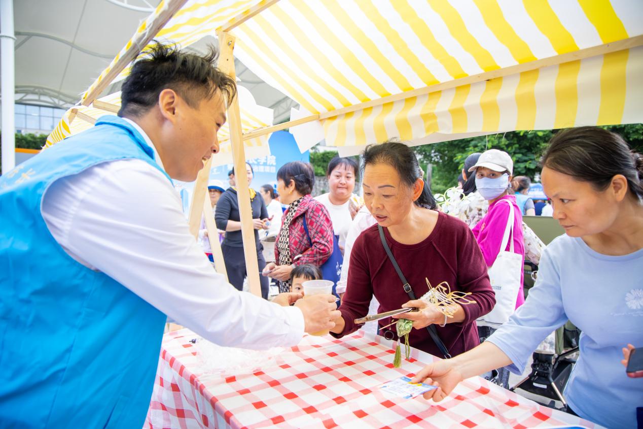 启动仪式后,公益服务市集随即开启。14个社区分会各展所长、各自充分链接本楼栋能人资源,推出了手机贴膜、义剪、中医理疗、补鞋、手打柠檬茶等便民服务,以及消防安全飞行棋、垃圾分类转盘等互动游戏。居民通过集章卡参与体验,楼栋长们在服务中“亮身份、展风采、聚人气”。