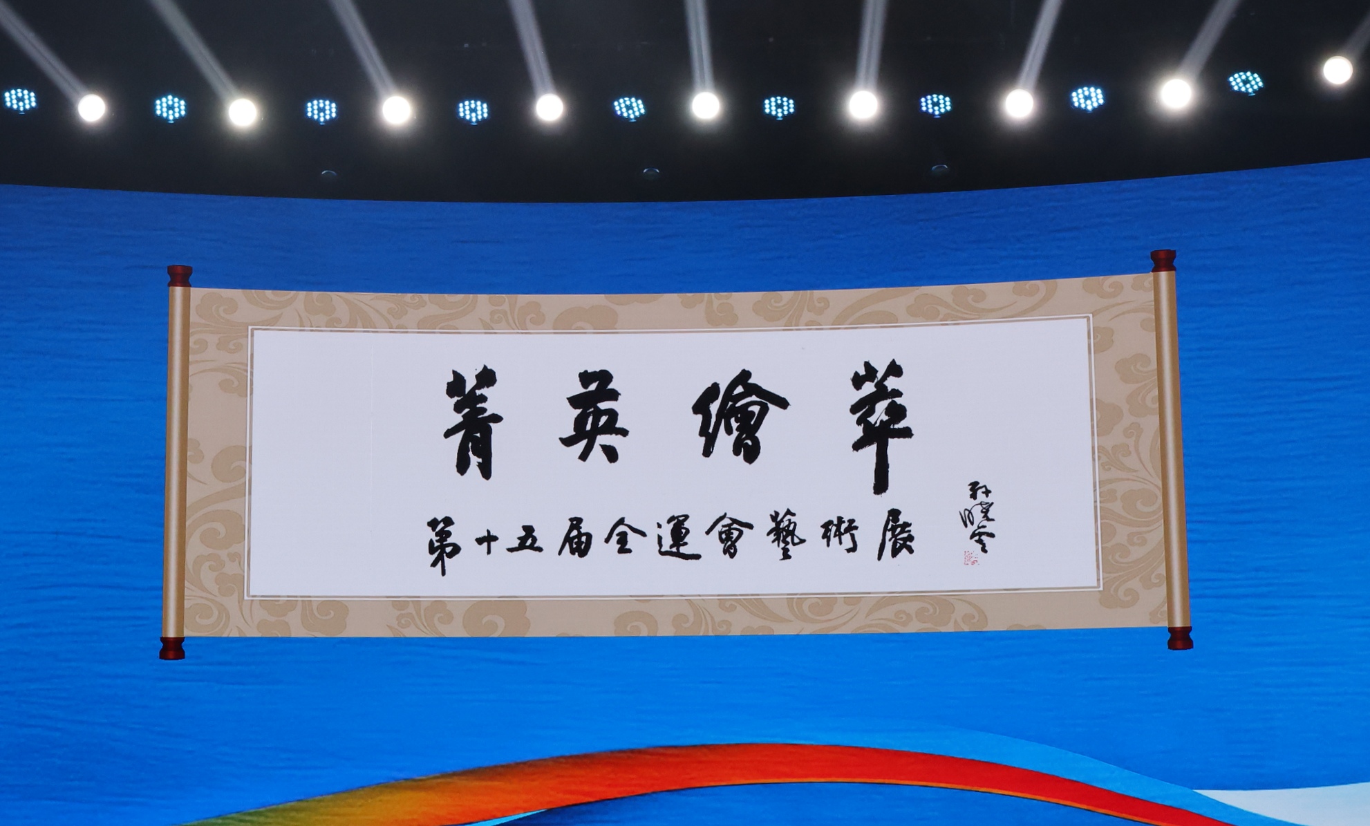 中国书法家协会主席孙晓云题写的“菁英荟萃——第15届全运会艺术展”