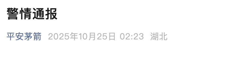 10月25日凌晨,湖北省十堰市公安局茅箭区分局发布警情通报——