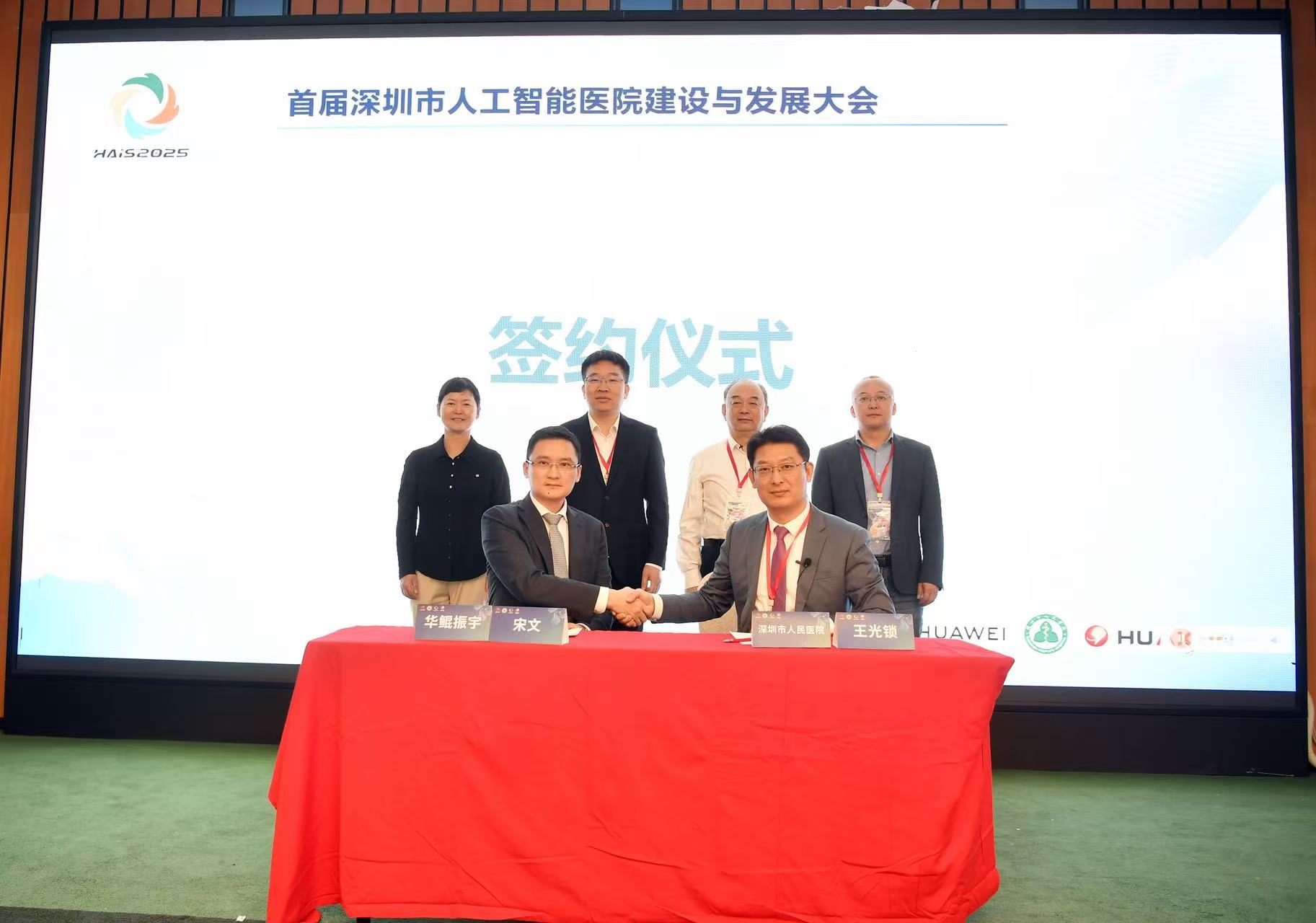 会上,深圳市人民医院与华为技术有限公司、华鲲振宇智能科技有限责任公司签署全面合作框架协议。标志着“医院—企业—技术”三方协同模式的正式建立,旨在推动人工智能技术在医疗场景中的快速落地与持续升级。