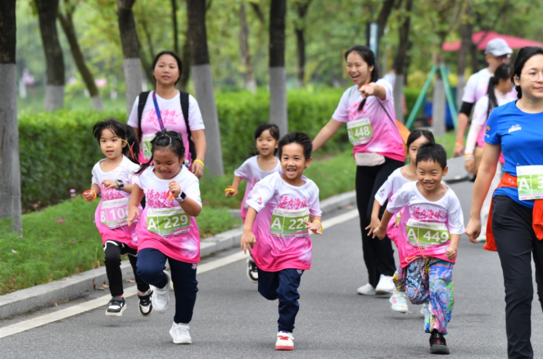 活动现场氛围热烈,参与人群涵盖各个年龄段,处处洋溢着温馨动人的画面。精神矍铄的长者们步伐稳健,神采奕奕;亲子家庭携手同行笑语不断;涌动的人流与湿地的自然风光交相辉映,展现体育与生态融合的美好画面,更让全民健身的理念悄然融入城市生活的日常。