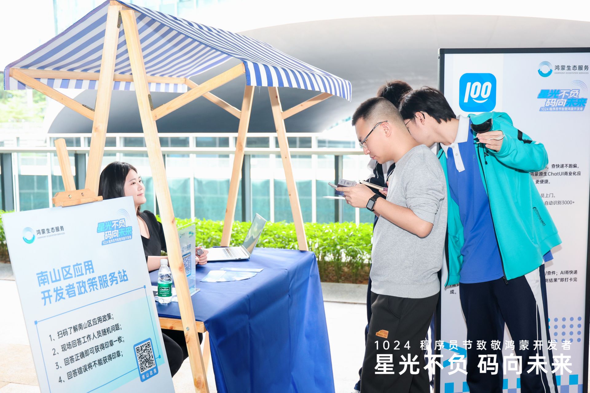 活动现场特别设立了“鸿蒙应用开发者激励计划2025”专区,鼓励开发者积极投身于鸿蒙应用、游戏及元服务的开发浪潮中。在专区现场,开发者们还能详尽了解该计划的各项激励政策,把握发展机遇。与此同时,现场还布置了南山区鸿蒙生态企业扶持政策咨询点,开发者可以深入了解南山区针对鸿蒙原生应用开发的专项扶持、软件企业人才扶持,以及鸿蒙生态企业的租金补贴等系列优惠举措,以系统性政策助力开发者把握万物互联机遇。
