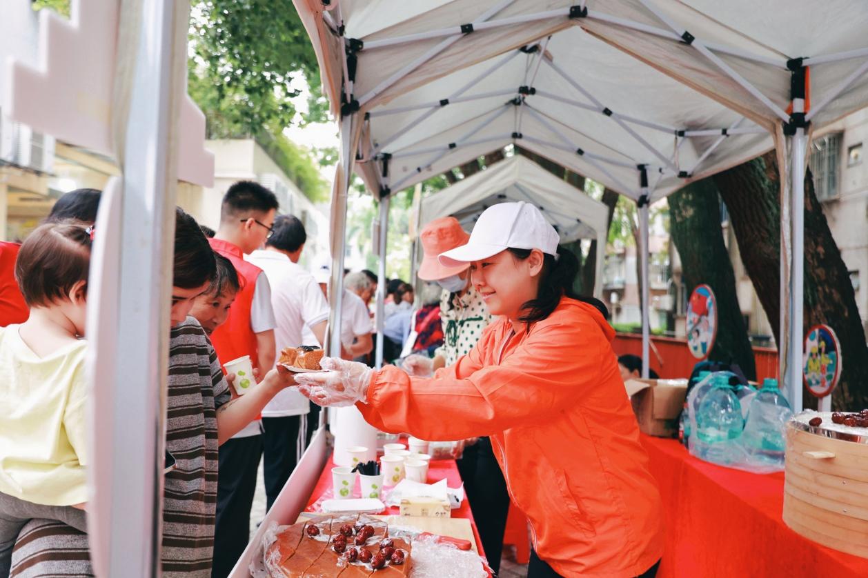 在“岁月铭刻·光华印记”区域,泛着暖黄灯光的“时光放映厅”里,老照片、旧收音机、缝纫机等老物件静静陈列,将光华街四十余年的发展故事娓娓道来。现场长者或是以分享生活智慧或是细数岁月趣事,就这样数代人围坐聆听中,相似的集体记忆悄然消弭了代际隔阂。品味养生茶、茱萸艾草锤手作等丰富的活动体验,不仅延续了传统习俗,更是传递着对长者的健康祝福。