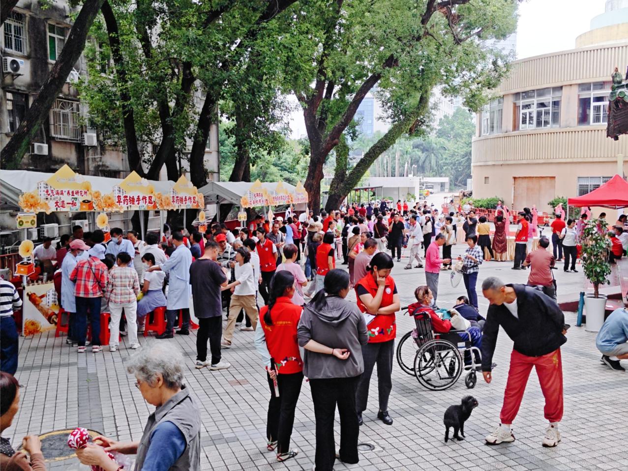 “桑榆未晚·乐龄共生”区域则展现长者的幸福生活图景。舞台上,传统舞狮开场引爆全场、传统粤剧唱出敬老爱老之情、桑榆服务队朗诵等多个节目尽显长者积极向上的精神风貌。福气套圈、菊韵掷飞盘等多个互动游戏区域前人头攒动,长者们生动诠释着“老有所乐、老有所为”的风貌。