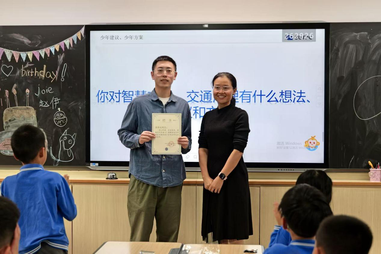 当天,学校给深城交的讲师颁发了聘书。“用心科普、启迪未来,感谢您点亮童心,特聘请您为罗湖区百雅实验小学项目研究专家导师。”404班班主任周卫梅老师说,老师非常用心,把同学们研究的有关交通的问题都做了非常细致地分享,每个人都收获满满。非常感谢深城交对同学们在项目研究过程中的支持,让孩子们在专业力量的启迪下,保持对世界的好奇和思考。