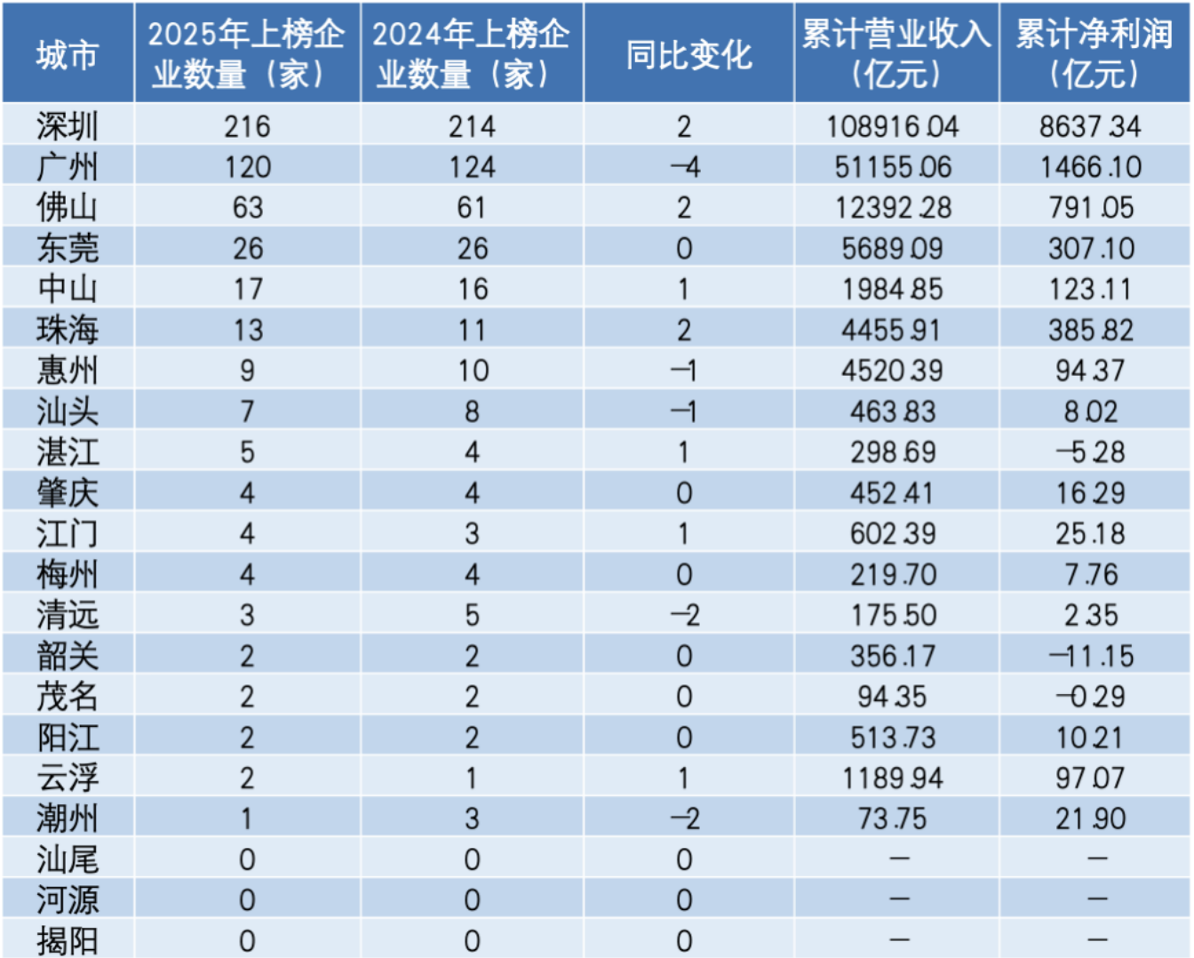 10月29日,广东省企业联合会、广东省企业家协会发布《2025广东500强企业发展报告》,深圳表现亮眼,以216家上榜企业数保持全省领先地位。与此同时,深圳共有七家企业位列榜单前十,分别是中国平安(第一)、华润(第二)、华为(第三)、比亚迪(第五)、腾讯(第六)、富士康(第七)和招商银行(第八),展现出极强的实力,是推动全省经济高质量发展的关键力量。