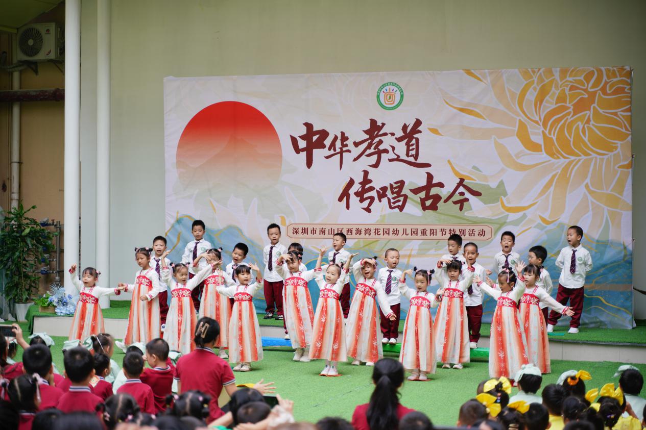 “岁岁重阳,今又重阳。” 在重阳节这个满载温情与传统的节日里,深圳市南山区西海湾花园幼儿园精心策划了一系列丰富多彩的活动,旨在传承敬老爱老的传统文化,让孩子们在实践中感受孝道的力量。