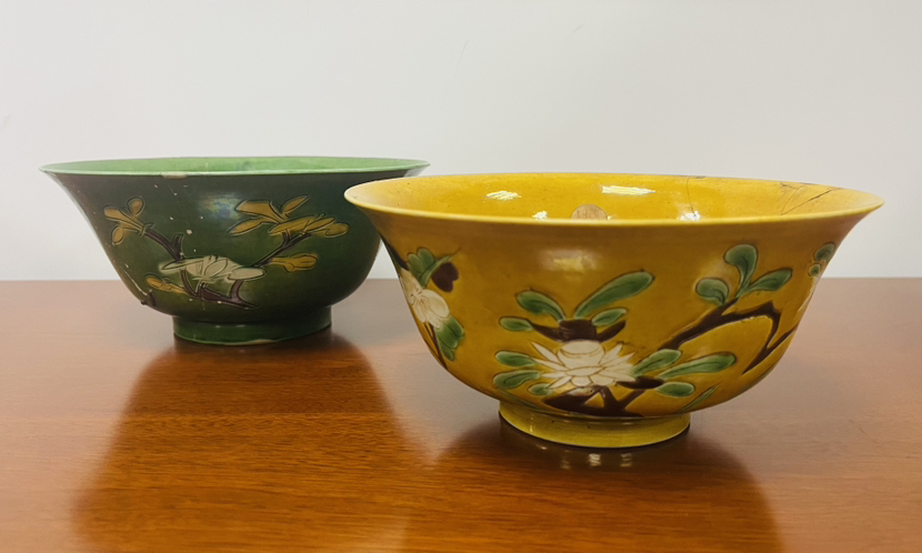 藏友李先生的清康熙素三彩花卉纹碗一组也颇为亮眼。已退休多年的李先生是一位资深藏家。他告诉记者,自己的收藏年龄与“黄贝岭深圳古玩城”一样大。他认为,收藏就是“养心”。日常生活里,李先生不仅热爱书法,在退休后还自学了钢琴,生活过得有滋有味。他说:“把玩之中,可以虔诚地聆听历史,明白哲理,走进一个宁静、悠远的世界,领略到一种无尽的遐想和陶醉,使心态得到调整,性情得到修炼,心灵得到升华,达到‘外适内和,体宁心恬’的境界。”