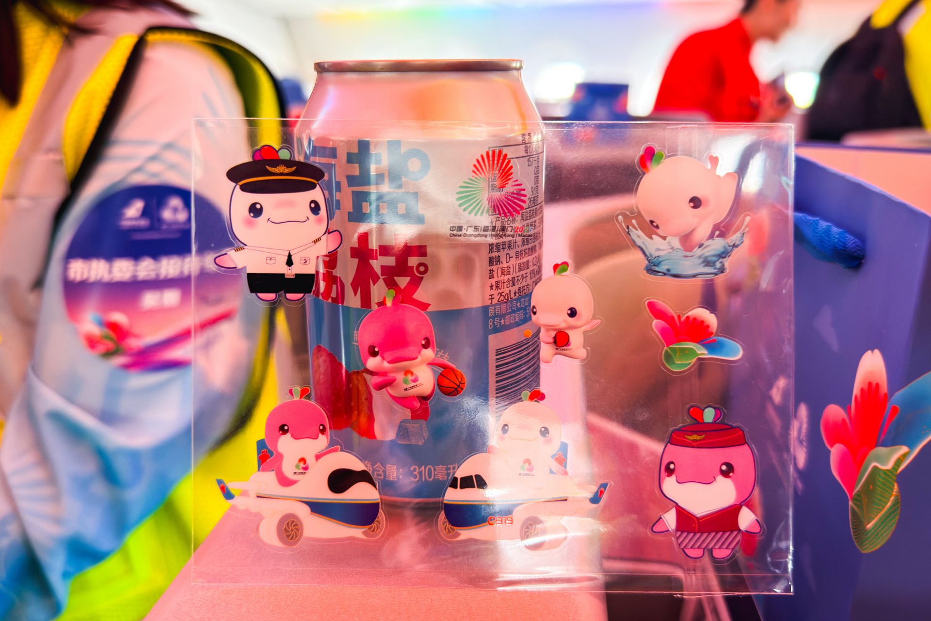 中国南方航空股份有限公司深圳分公司乘务长李倩倩表示:“每位乘坐‘活力湾区号’的乘客,都会获得一份‘五色木棉绽放特色礼包’,里面包含一份抹茶迷你黄油酥、海盐荔枝饮品以及化身机长、乘务员的十五运会吉祥物,让乘客感受更浓厚的全运会氛围。”