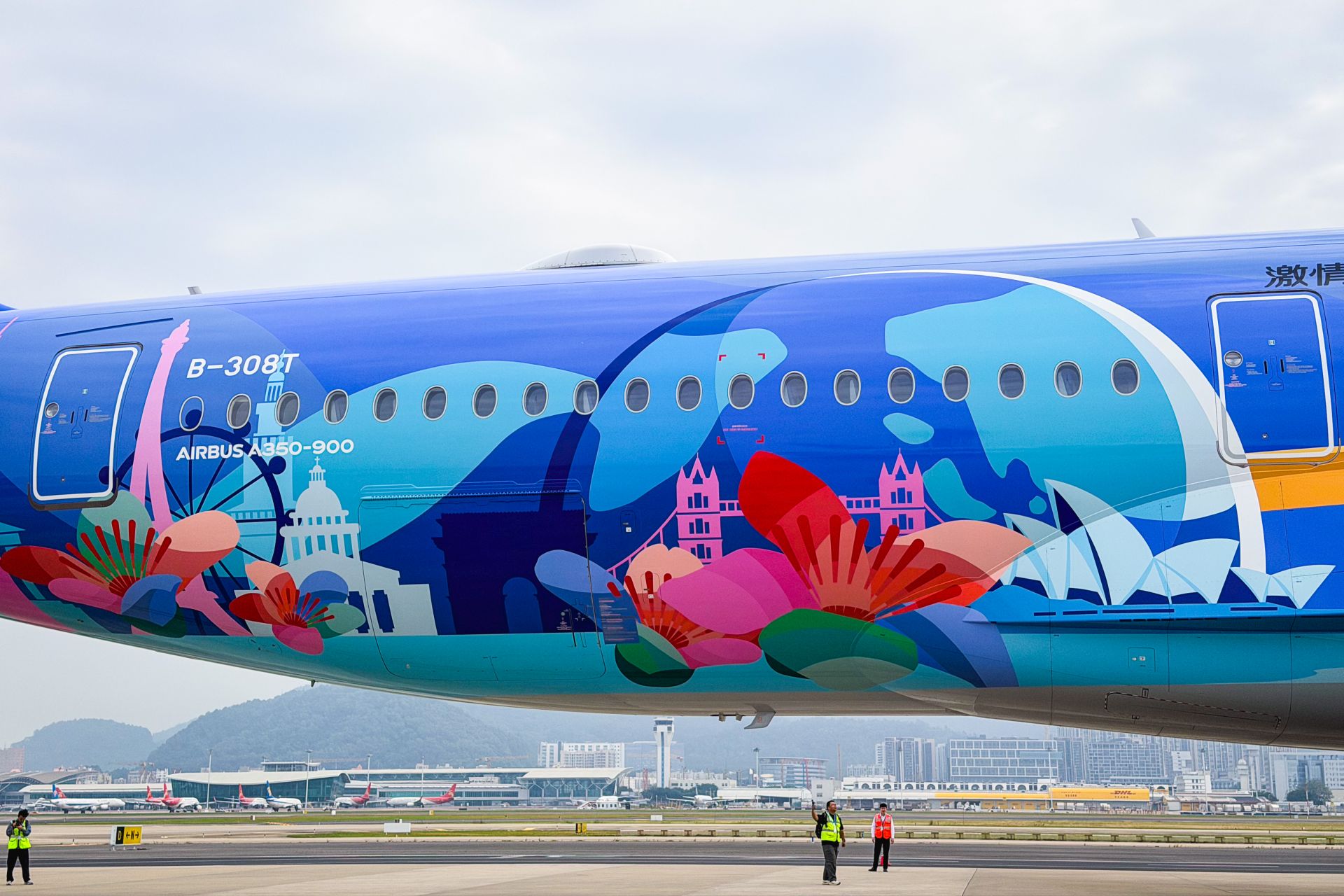 “‘活力湾区号’机身外观以‘活力湾区 跃动世界’为主题,融合港珠澳大桥、十五运会和残特奥会吉祥物‘喜洋洋’‘乐融融’等标志性元素,并通过电影错位视觉手法增强画面动感。”中国南方航空股份有限公司工程技术分公司深圳基地维修工程师刘宇钦介绍,该机涂装耗时17天,使用近50种颜色,漆膜厚度严格控制在120微米以内,借助2D转3D制图工艺实现图案的高精度还原。