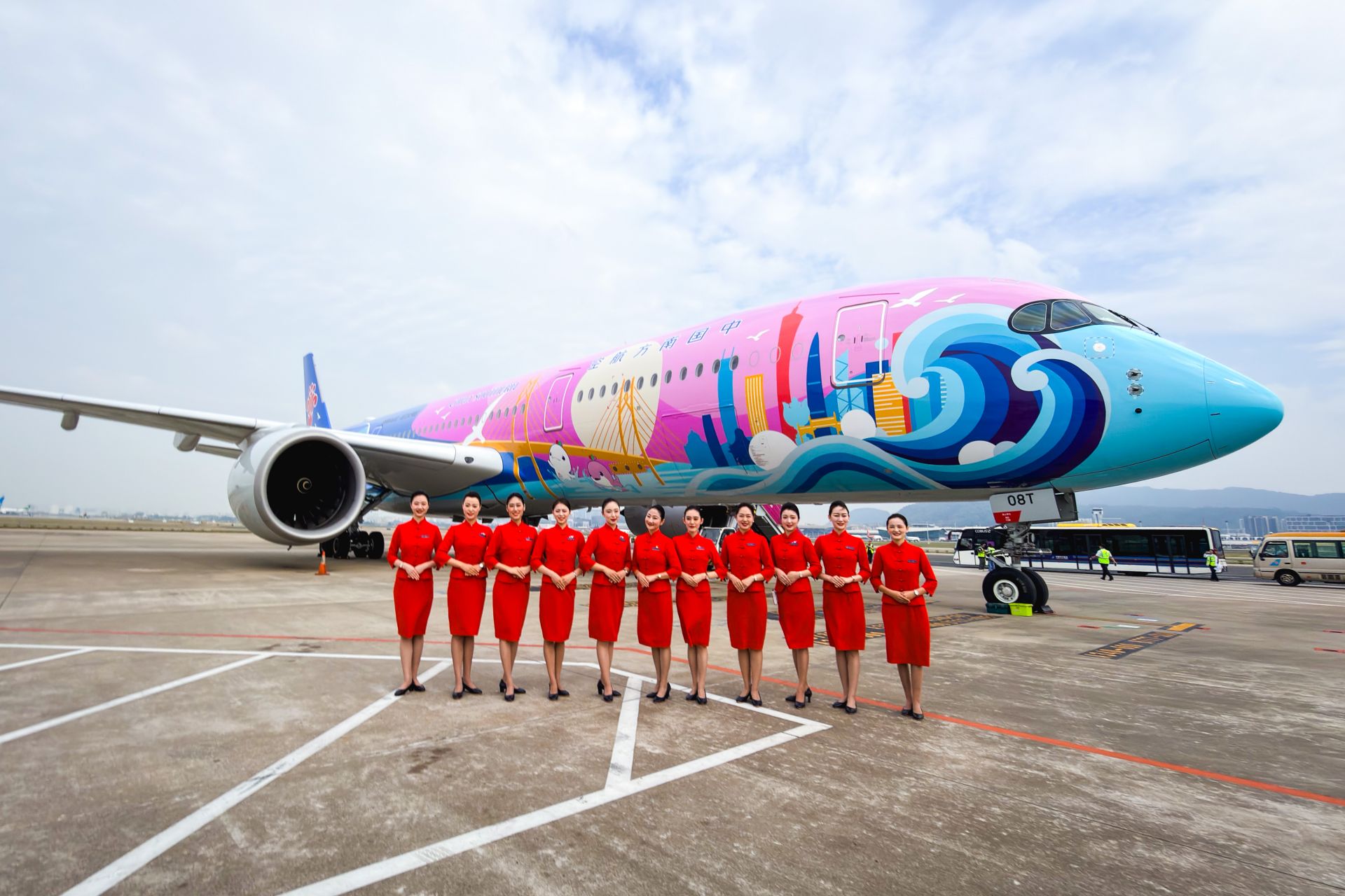 南航为赛事量身打造的“活力湾区号”主题彩绘飞机近日已经亮相,并开始执行飞行任务。据了解,南航联合全运会组委会精心打造了“活力湾区号”和“大美湾区号”两架主题彩绘客机,分别为空客A350、中国商飞C919客机。其中,“活力湾区号”已于10月26日起正式在深圳执飞,执行深圳-北京大兴、深圳-上海虹桥等航线。