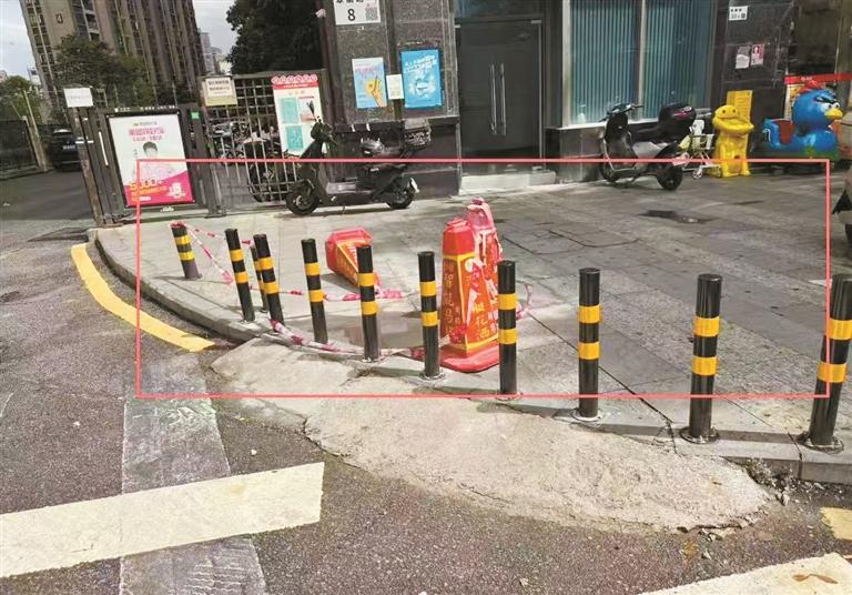 在居民持续反映情况后,龙华区相关部门介入协调。10月15日下午,润城社区与陶润懿峰物业管理处沟通协调后,拆除了部分防撞柱,并增设斜坡。10月28日,该路段西侧围挡部分由区相关职能部门协调拆除并增设人行道。