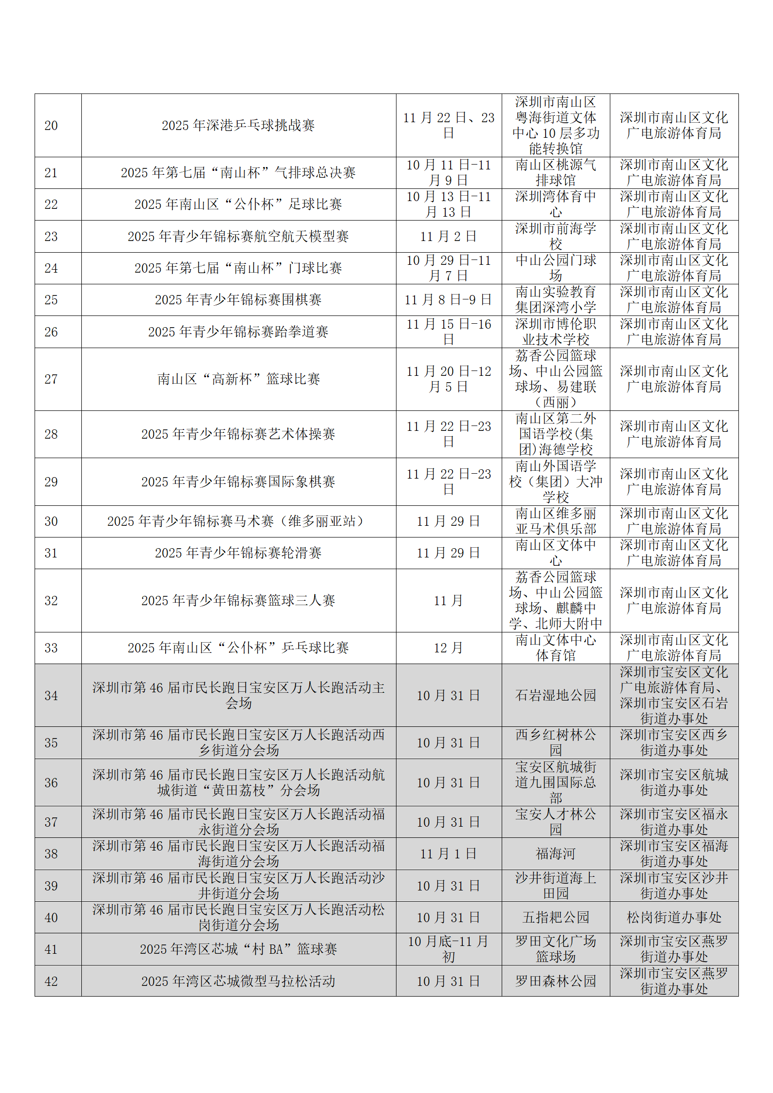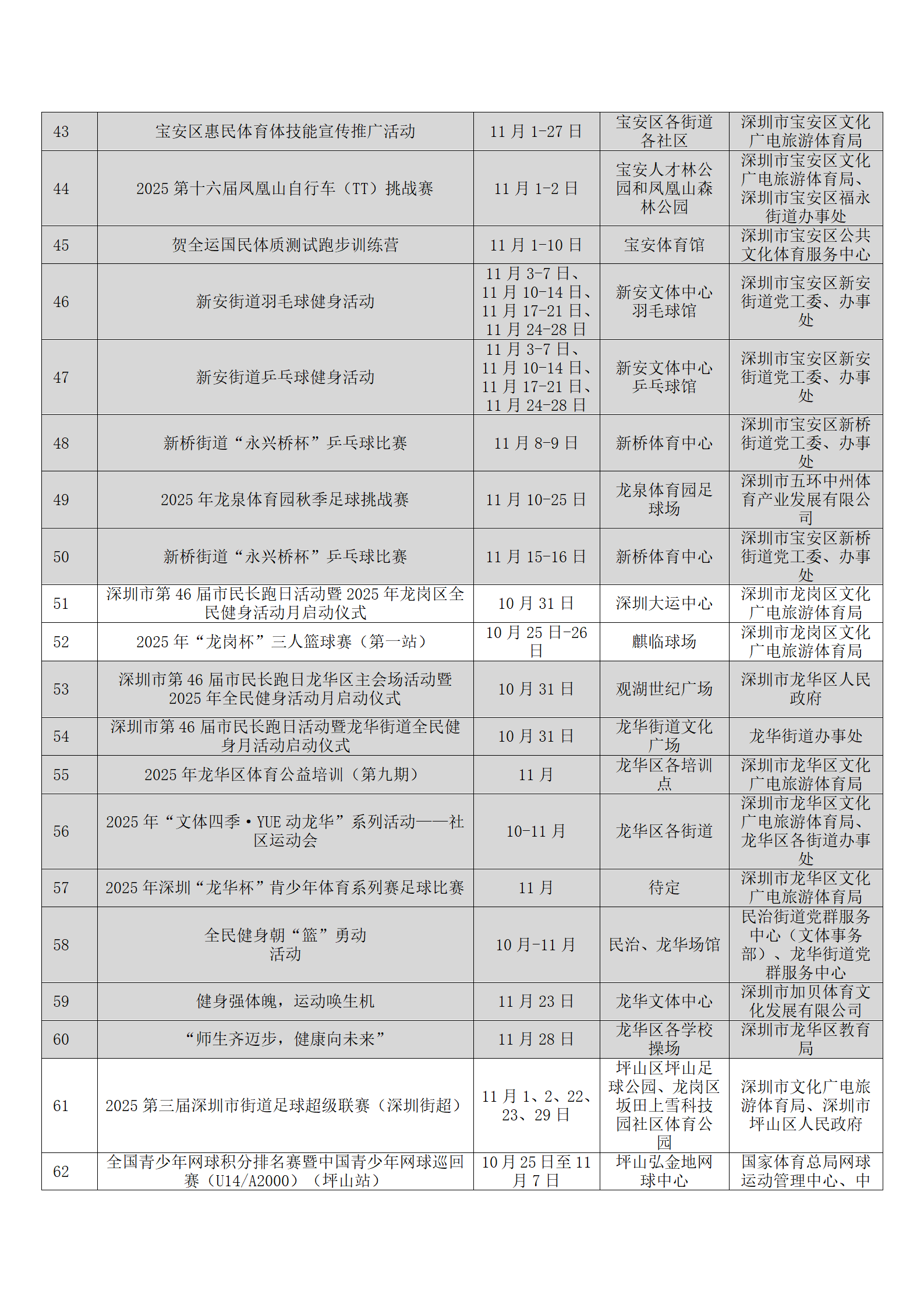 2025年是全国运动会首次在粤港澳大湾区举办之年,深圳赛区承办了游泳、羽毛球、足球、篮球、排球、马拉松、拳击、马术、小轮车、航模、棋牌等项目,各项赛事正在密集开赛。随着十五运会和残特奥会进入最后的冲刺阶段,我们诚挚倡议每位市民朋友积极投身体育锻炼,以实际行动关注并支持全运会,共同营造“全民全运、全运惠民”的浓厚氛围。