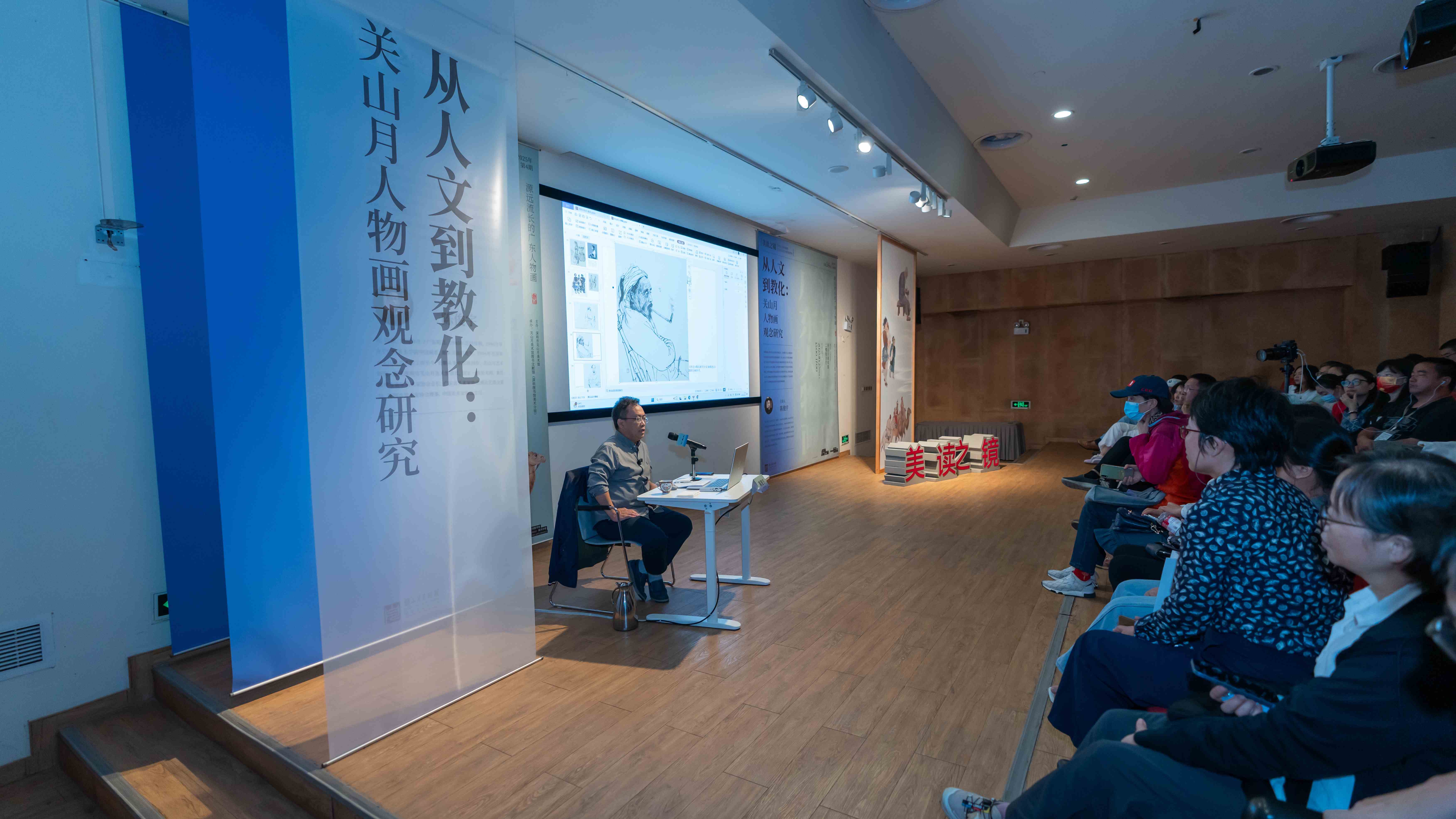 在讲座的开始,陈俊宇开宗明义地表示,关山月的人物画研究不是静态的,随着不同角度、不同专家、不同时代的审视,老问题常会有新答案。他解读讲座题目“人文与教化”时表示,以1949年为时间节点,关山月的人物画分为两部分。第一部分是人文,指1949年之前,其主要功能是人文关怀;第二部分,1949年后,这一部分是教化。关山月的身份发生变化,作为美术学院教授,他肩负着人物画教学的功能,同时国家文化政策也需要人物画进行社会教育。
