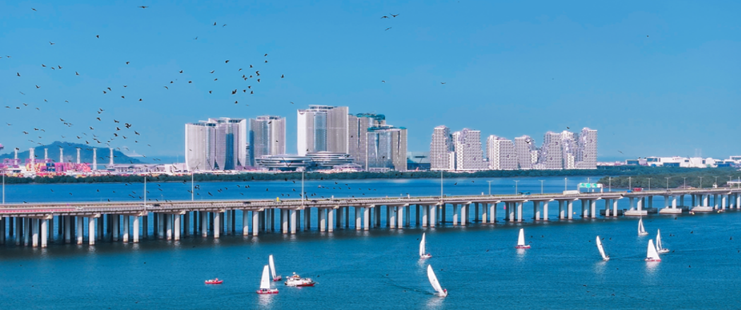 航程中特别飞越蛇口片区,俯瞰改革开放“开山第一炮”的历史现场,最终抵达前海石公园桂湾段。约40公里的航程串联山、海、城、港,展现深圳从改革起点到全球海洋中心城市的开放决心与发展魄力。