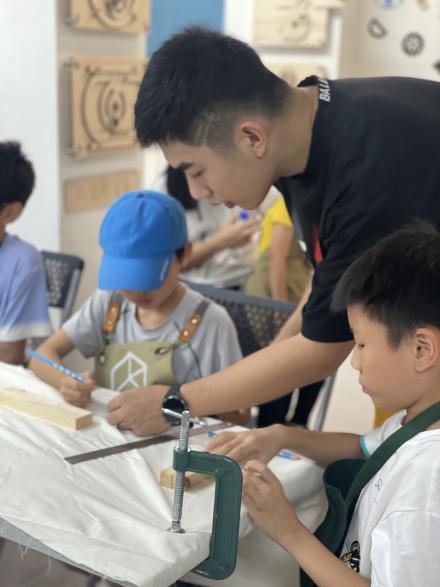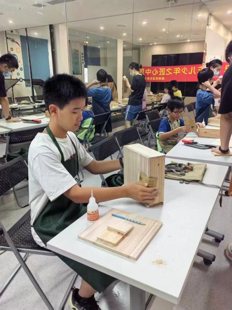 近日,南山区招商街道花果山社区党群活动中心内,锯木声轻响,刨花香微飘,一群年龄在9至15岁之间的“小匠人”正埋头于手中的作品。与往年不同的是,广受好评的“小木匠大爱心”民微项目已全面升级为内涵更深厚的“匠心中国”传统文化传承项目。在这里,木艺不再是单纯的手工,而是化作了一座连接古今的桥梁,让孩子们在榫卯与线条间,亲身触摸中华文明的脉搏。